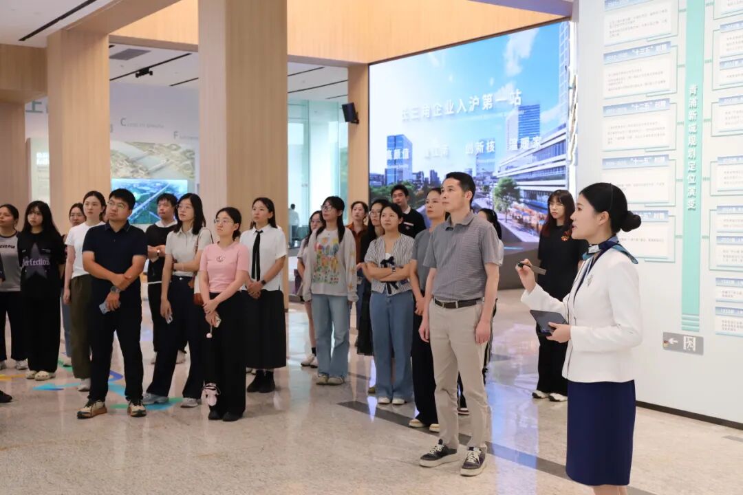 活动伊始,一行人首先来到青浦招商展示中心。在讲解员的引导下,新员工们参观了新城总体规划、产业发展相关展示内容,系统了解了区域内交通网络、产业集群、生态配套等核心布局,沉浸式感受青浦新城的发展蓝图。参观过程中,新员工们围绕新城未来发展方向、产业协同机遇等话题不时驻足交流,现场氛围热烈。
