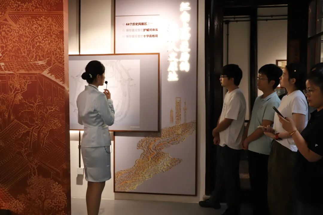 随后,一行人前往老城厢,参观了行素堂黄宅与胡宅。两处建筑满含历史感与人文气息,不仅承载着深厚的地域根基与文化底蕴,更成为传承与创新结合的优秀范例,生动展现出青浦新城的文化内核——既尊重传统根基,又兼具创新与开拓精神。